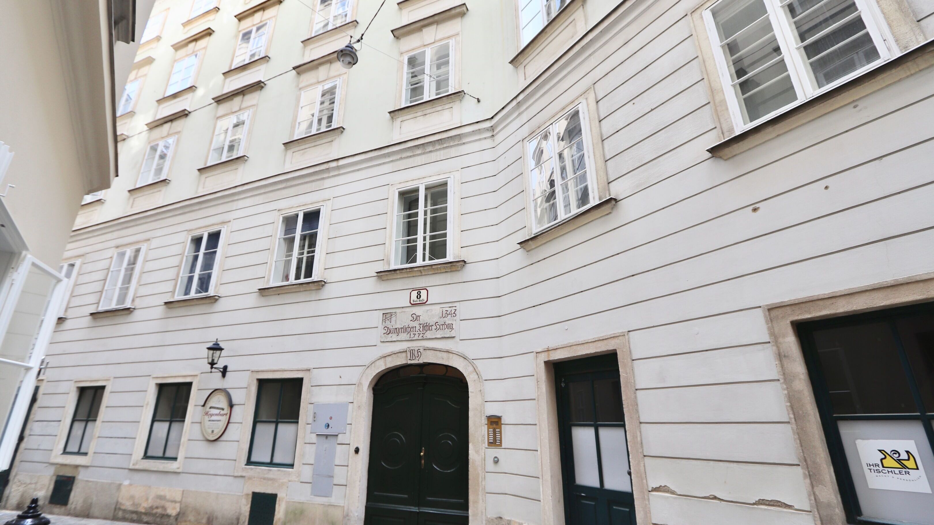 Zurück Zurück zu den Ergebnissen Bilder Pläne 1/35 1010 Wien, Ballgasse 2 getrennt begehbare BIEDERMEIER-INNENSTADTAPARTMENTS in historischem Haus Nächst Kärntner Straße Wohnfläche 93,45 m² Balkonfläche 3 m² Zimmer 4,5 Bäder 2 Verfügbar ab sofort Stil Altbau Kaufpreis € 1.490.000,– Objekt-ID: 13644 Eckdaten Etage 2. OG Wohnfläche 93,45 m² Nutzfläche 96,45 m² Balkonfläche 3 m² Zimmer 4,5 Bäder 2 WC 2 Baujahr 1772 Stil Altbau Zustand Erstbezug Preis Kaufpreis € 1.490.000,– Betriebskosten € 196,41 Umsatzsteuer € 19,64 MonatlicheGesamtbelastung € 250,51 Provision 53.640,00 € inkl. 20% USt. Nebenkostenübersicht (PDF) Ausstattung WG geeignet Räume veränderbar Dusche Einbauküche Wohnküche / offene Küche Fliesen Parkett Etagenheizung Gas Ostbalkon / -terrasse Vollmöbliert Abstellraum Massiv Gäste-WC Objektbeschreibung 1772/73 wurde auf Anordnung Maria Theresias das Gebäude als Herberge für arbeitslose Gesellen errichtet, ab 1893 diente das Gebäude als Innungshaus der Tischler. Oberhalb des Korbbogenportals weist die Inschrift „Der bürgerlichen Tischler Herberg 1772“ auf den damaligen Zweck des Hauses hin. Die josephinische Fassade verfügt über einen konkaven Knick. Das Objekt liegt auf der 2. Etage (kein Lift) und verfügt insgesamt über ca. 93 qm Wohnfläche, welche sich in zwei generalsanierte und voll ausgestattete Apartments aufteilt. Die beiden Wohneinheiten sind über den gemeinsamen Eingangsbereich zu begehen. Des Weiteren sind über das Entrée der hofseitige Balkon sowie zwei Abstellräume zu erreichen. Apartment 1 verfügt über einen Raum im Ausmaß von ca. 34 qm. Über die moderne Wohnküche gelangt man in den stylisch gestalteten Schlafbereich mit angrenzendem Badezimmer, welches mit Walk-In-Dusche und WC ausgestattet ist. Apartment 2 weist eine Wohnfläche im Ausmaß von ca. 59 qm auf und gliedert sich in eine geschmackvolle Wohnküche, einen Vorraum, ein separates WC sowie ein hofseitiges Schlafzimmer mit Balkonzugang und hochwertigem ensuite-Bad. Das Objekt wird mittels Gasetagenheizung beheizt und ist mit originalen Holzfenstern und Eichen-Parkettböden in Fischgrät-Design ausgestattet. Wir freuen uns, Ihnen dieses Objekt im Zuge einer Besichtigung präsentieren zu dürfen! Dieses Objekt wird Ihnen unverbindlich und freibleibend zum Kauf angeboten. Oben angeführte Angaben basieren auf Informationen und Unterlagen der Eigentümerin und sind unsererseits ohne Gewähr. Als Vermittlungshonorar gelten die allgemeinen Geschäftsbedingungen und die Verordnung für Immobilienmakler des BM für Handel, Gewerbe und Industrie, BGBL. 297/1996. Für den Fall, dass es diesbezüglich zu einem entsprechenden Rechtsgeschäft kommt, verrechnen wir Ihnen eine Vermittlungsprovision von 3 Prozent der Kaufsumme zuzüglich der gesetzlichen Umsatzsteuer. Wir möchten noch darauf hinweisen, dass wir in einem wirtschaftlichen Naheverhältnis zur Verkäuferin stehen. Wir weisen darauf hin, dass zwischen dem Vermittler und dem zu vermittelnden Dritten ein familiäres oder wirtschaftliches Naheverhältnis besteht. Der Vermittler ist als Doppelmakler tätig. Mehr erfahren Downloads Exposé Lage Diese denkmalgeschützte Biedermeier-Liegenschaft befindet sich in der Ballgasse, einer feinen, stillen Fußgängerzone mitten im Herzen der Wiener Innenstadt, die ein bemerkenswertes Ensemble aus josephinischen Wohnhäusern aufweist. Ansprechpartner Patrick Winkler Immobilienvertrieb Immobilie anfragen +43 660 8461085 +43 1 3157280 vCard Energieausweis C HWB: 93,40 kWh/m²a D fGEE: 1,88 In Google Maps anzeigen Anfrage Wir freuen uns über Ihre Anfrage zu "2 getrennt begehbare BIEDERMEIER-INNENSTADTAPARTMENTS in historischem Haus Nächst Kärntner Straße". Anrede Anrede* "Herr" "Frau" Neutral Keine Angabe Titel Titel nachgest. Vorname Nachname Rückrufservice Telefonnr. Zeitraum Zeitraum Mo 15.12., 08:30 – 10:30 Mo 15.12., 10:30 – 12:30 Mo 15.12., 12:30 – 14:30 Mo 15.12., 14:30 – 16:30 Mo 15.12., 16:30 – 18:30 E-Mail Nachricht Anmeldung zum WINEGG-Newsletter Ich bin damit einverstanden, dass meine Daten zum Zwecke der Bearbeitung der Anfrage gespeichert und weiterverarbeitet werden. Weitere Informationen finden Sie in unserer Datenschutzerklärung. * Bitte geben Sie in dieses Feld 999 ein Senden