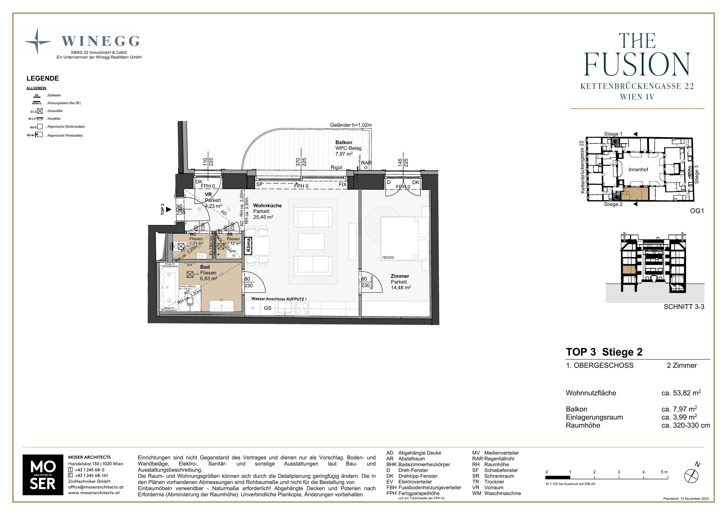 Zurück Zurück zu den Ergebnissen Bilder Pläne 1/23 1040 Wien, Kettenbrückengasse 22 - Top 2/3 THE FUSION - Top 2/3 HOFLAGE mit BALKON! Luxus-Erstbezug mit 3,30 m Raumhöhe im 1. Obergeschoß Wohnfläche 53,82 m² Balkonfläche 7,97 m² Zimmer 2 Bäder 1 Verfügbar ab sofort Stil Altbau Kaufpreis € 625.000,– Objekt-ID: 12243 Eckdaten Etage 1. OG Wohnfläche 53,82 m² Balkonfläche 7,97 m² Zimmer 2 Bäder 1 WC 1 Baujahr 2022 Stil Altbau Zustand Erstbezug Preis Kaufpreis € 625.000,– Betriebskosten € 134,30 Umsatzsteuer € 13,43 MonatlicheGesamtbelastung € 165,13 Provision 3% des Kaufpreises zzgl. 20% USt. Nebenkostenübersicht (PDF) Zukunftssicher investieren Diese Immobilie eignet sich ideal als Anlageobjekt. Jetzt ansehen Ausstattung Fliesen Parkett Fußbodenheizung Zentralheizung Gas Personenaufzug Barrierefrei Wohnküche / offene Küche Klimaanlage Objektbeschreibung DAS PROJEKT ENJOY THE UNEXPECTED Direkt am Naschmarkt vereint das Projekt „THE FUSION by WINEGG“ eindrucksvoll unterschiedliche Einflüsse und bündelt das Beste aus mehreren Epochen. Der geschichtsträchtige Vordertrakt der Liegenschaft in der Kettenbrückengasse 22 ist dem Biedermeier zuzurechnen und wurde 1827 vom Bauherren Friedrich Sträussle erbaut. Erst in der Gründerzeit wurde der hintere Gebäudetrakt ergänzt. Dieser Hoftrakt wurde stets als Gewerbegebäude genutzt, während der Straßentrakt im Erdgeschoß als Geschäftsfläche diente und in den Obergeschoßen seit jeher Wohnungen beherbergte. Bei der zeitgemäßen Sanierung und sorgfältigen Modernisierung wird besonders darauf geachtet, den wertvollen historischen Charakter des Gebäudes innen wie außen auf respektvolle Weise zu bewahren. In THE FUSION by WINEGG finden Design und Funktionalität ihre schönste Entsprechung – mit dem Ziel, Sie mit allen Sinnen zu verwöhnen. Edle Materialien und ein Gespür für vollendete Inszenierung hauchen den exklusiven Wohnungen außergewöhnlichen Luxus ein. Der hochwertige Fischgrätparkett belebt jeden Wohnraum durch seine außergewöhnliche Optik und verströmt eine angenehm entschleunigende Wirkung. Großzügige Fensterfronten mit klassisch edlen Sprossen unterstreichen auf meisterhafte Weise den vornehmen Charakter des Gebäudes – innen wie außen. Dank klimatisierter Wohnräume in allen Geschoßen können Sie stets in Frische und Entspannung verweilen. Perlgoldene Stabgeländer schmücken die Freibereiche und werden zum wertvollen Designelement. Ihre besondere Eleganz ergibt sich durch sanfte Rundungen und größte handwerkliche Präzision. AUSSTATTUNG Hochwertiges Fischgrätparkett Alle Wohnräume klimatisiert Exquisite Sanitärobjekte in den Bädern Edles, italienisches Feinsteinzeug Gegensprechanlage mit Video-Option Komfortable Paketboxanlage Online-Hausverwaltung mittels Puck-App HIGHLIGHTS 46 exklusive Eigentumswohnungen 2 Geschäftsobjekte Größen von 50 bis 170 m² 2 bis 4 Zimmer Luxuriöse Ausstattung Balkone, Terrassen, Dach- und Gartenterrassen WOHNUNG STIEGE 2 | TOP 3 Diese 2-Zimmer Wohnung verfügt über ca. 54 qm, befindet sich im 1. Liftstock auf Stiege 2 und ist hofseitig ausgerichtet. Über den Vorraum gelangt man in die Wohnküche mit ca. 25 qm, in das separate WC mit Handwaschbecken sowie in den Abstellraum mit Waschmaschinenanschluss. Das Badezimmer mit Badewanne, Dusche und Handwaschbecken lässt sich über die Wohnküche betreten. Das Schlafzimmer im Ausmaß von ca. 15 qm ist vom Wohnraum aus zu begehen. Die Raumhöhe beträgt ca. 2,5 m. Der ruhig gelgegene Balkon mit ca. 8 qm ist von der Wohnküche aus begehbar. NACHHALTIGKEIT FÜR NÄCHSTE GENERATIONEN Genießen Sie Innovation, Nachhaltigkeit und Handwerkskunst par excellence. So wird sowohl bei Planung, Bau als auch Betrieb des Gebäudes auf höchste ökologische, ökonomische sowie soziokulturelle und funktionale Qualität gesetzt. NEBENKOSTEN Diese Objekte werden Ihnen unverbindlich und freibleibend zum Kauf angeboten. Als Vermittlungshonorar gelten die allgemeinen Geschäftsbedingungen und die Verordnung für Immobilienmakler des BM für Handel, Gewerbe und Industrie, BGBL. 297/1996. Für den Fall, dass es diesbezüglich zu einem entsprechenden Rechtsgeschäft kommt, verrechnen wir Ihnen eine Vermittlungsprovision von 3 Prozent der Kaufsumme zuzüglich der gesetzlichen Mehrwertsteuer. Wir möchten noch darauf hinweisen, dass wir in einem wirtschaftlichen Naheverhältnis zur Verkäuferin stehen. Mehr erfahren Downloads Exposé Lage Die Bezeichnung der Kettenbrückengasse geht auf die Kettenbrücke zurück, die 1830 über den seinerzeit noch nicht eingewölbten Wienfluss errichtet wurde und eine für das damalige Wien sehr fortschrittliche Brückenkonstruktion darstellte. Der Standort lässt aufgrund der Nähe zum berühmten und beliebten Naschmarkt keine Wünsche offen – sowohl vielseitige Gastronomie, trendige Shops als auch Trödel- und Antiquitätenmärkte laden zum Gustieren und Flanieren ein. Ein gemütlicher Spaziergang in den 1. Bezirk eröffnet weitere Freizeitangebote oder einen kurzen Arbeitsweg in die Innenstadt. Die öffentliche Verkehrsanbindung ist als ausgezeichnet zu bewerten: In unmittelbarer Umgebung befindet sich die U4 Kettenbrückengasse sowie die Autobuslinie 59 A (Stationen Pressgasse und Schönbrunner Straße). In ca. 12 Gehminuten ist die U3 Neubaugasse und somit auch die Mariahilfer Straße zu erreichen. Der Karlsplatz ist fußläufig ca. 13 Minuten entfernt. Dort befinden sich die U-Bahn-Linien U1, U2 und U4. Ansprechpartner Clemens Dostal Immobilienvertrieb Immobilie anfragen +43 664 8294551 +43 1 3157280–870 vCard Energieausweis A HWB: 17,18 kWh/m²a A fGEE: 0,69 In Google Maps anzeigen Ähnliche Wohnungen im Projekt "THE FUSION" Stg/Top Etage Zimmer Wohnfläche Freifläche Balkon Preis Status Details 1/11 | 2. DG 2. DG 2 Zimmer 55,71 m² 7,80 m² 7,80 m² € 643.000 verfügbar verfügbar zum Dachgeschoß 2/11 | 2. DG 2. DG 2 Zimmer 53,57 m² 7,98 m² 7,98 m² € 638.000 verf